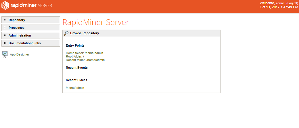 Click Start installation now. When the installation completes, the RapidMiner Server Home page appears: