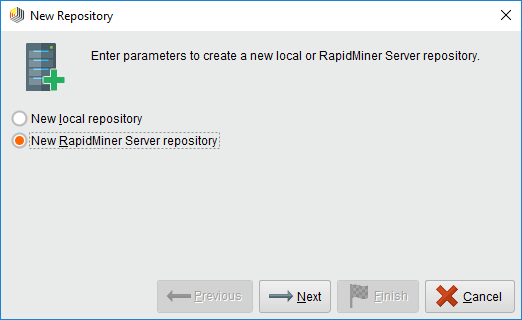 From the New Repository window, select New RapidMiner Server Repository. Click